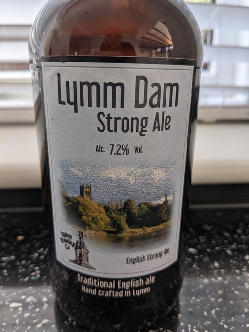 Lymm Dam Strong Bottled and bottle conditionedPours a deep rich chestnut coloured body with lustrous thick white headBarley sugar aromaSlightly spiced sweet bun flavourGreat older English ale brew